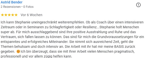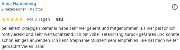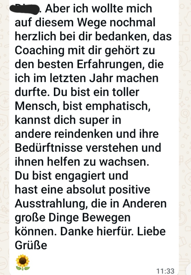 Ich bin zu tiefst dankbar und kann ein Coaching mit Steffi nur empfehlen.